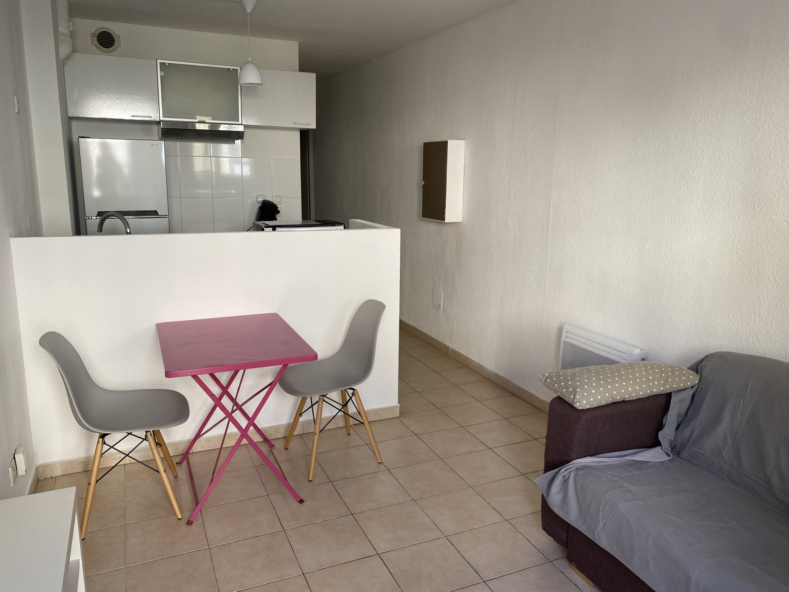 Joli appartement de type P2 meublé de 33m2 et comprenant un coin séjour avec cuisine de 18m2, une chambre, et une salle d'eau et WC.
