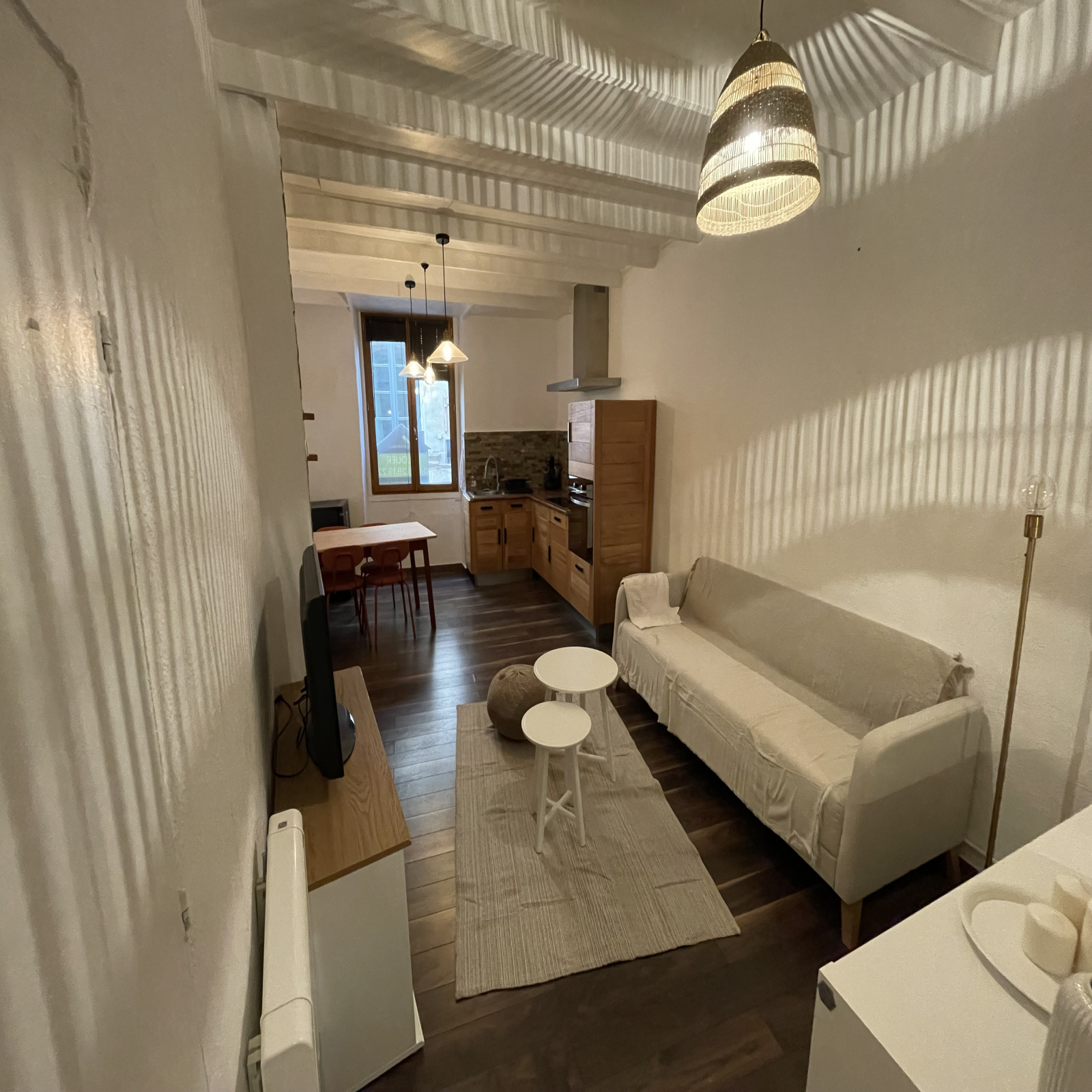 ECUSSON, Appartement T2 meublé situé au 1er étage, rénové avec goût, il est composé d'une pièce de vie, une chambre avec dressing et une salle d'eau avec WC.