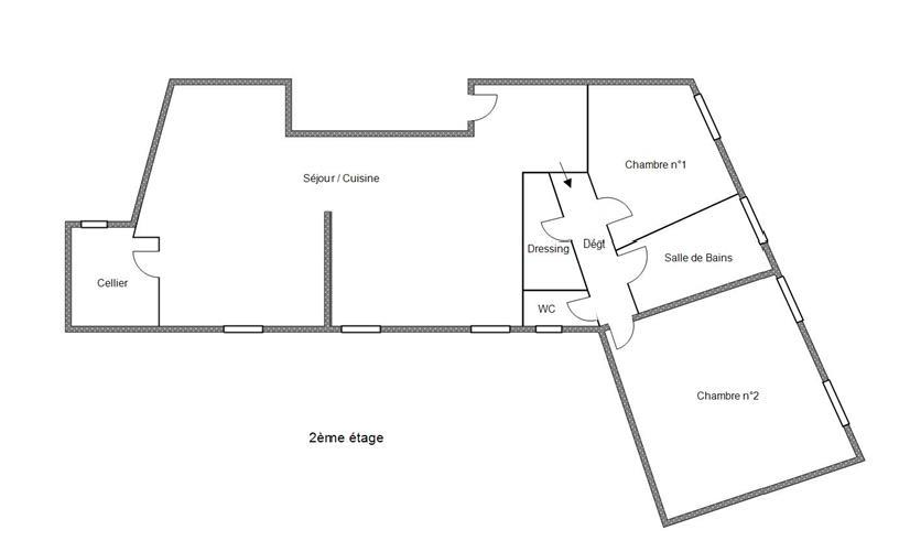 L'appartement se compose : d'une entrée ouverte sur un séjour très lumineux et chaleureux avec cheminée décorative, d'une cuisine semi-ouverte aménagée et équipée (plaque de cuisson, hotte, four) offrant ainsi une grande pièce de vie de 57.28 m², côté pratique un celier/buanderie, une salle d'eau avec double vasque, douche et baignoire, un WC séparé.