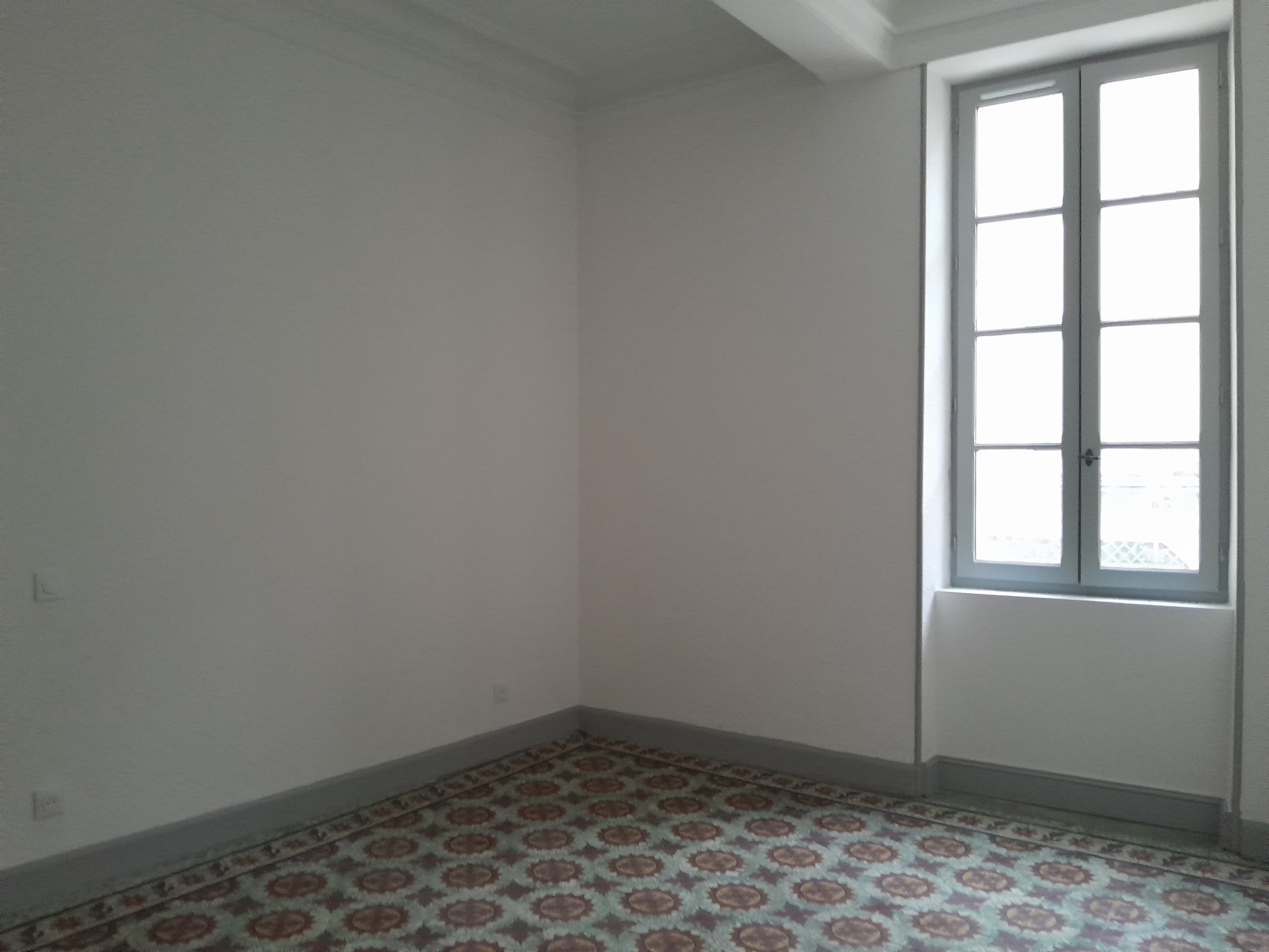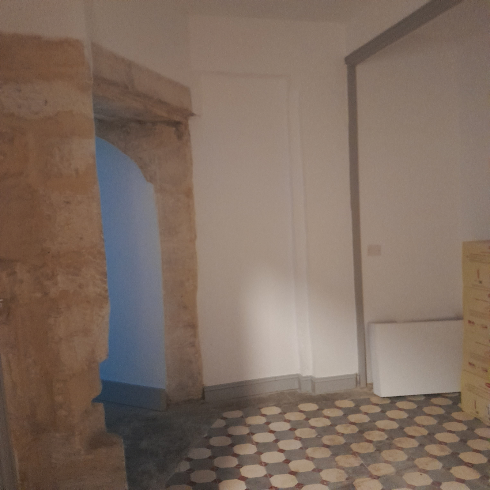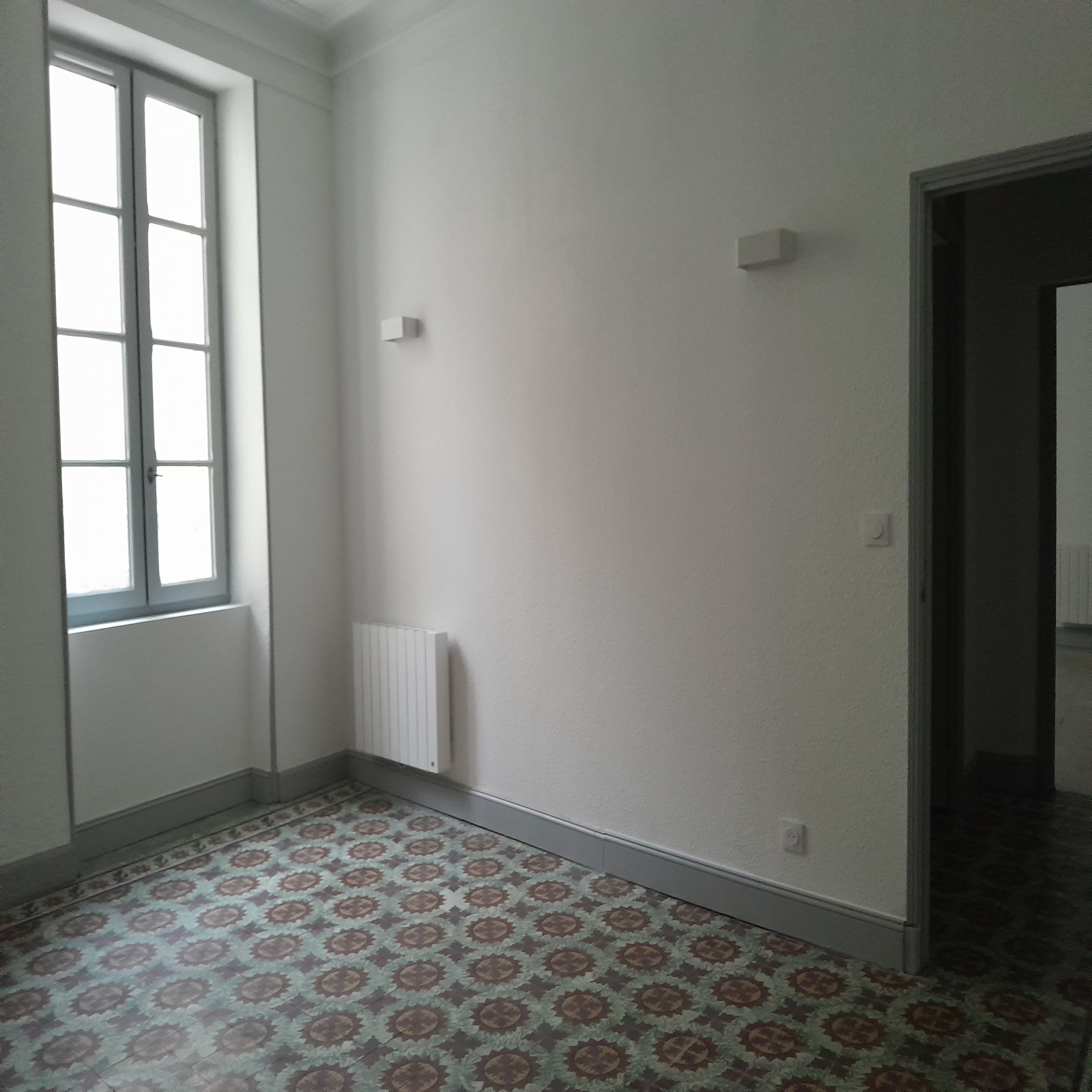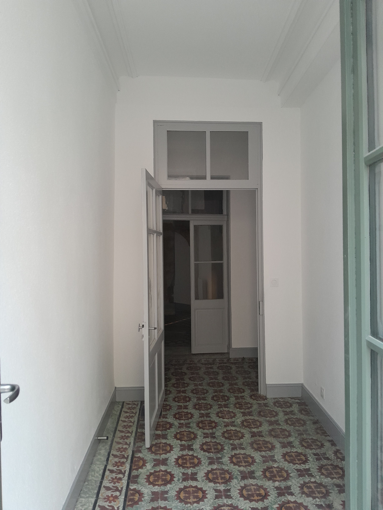 Nîmes Coupole : A Côté immobilier, vous propose à la location au 1er étage, un bel appartement traversant de 85,73 m², spacieux séjour, cuisine équipée, deux chambres, bureau, salle d'eau, wc. Terrasse. Rénovation de qualité, carrelage ciment.