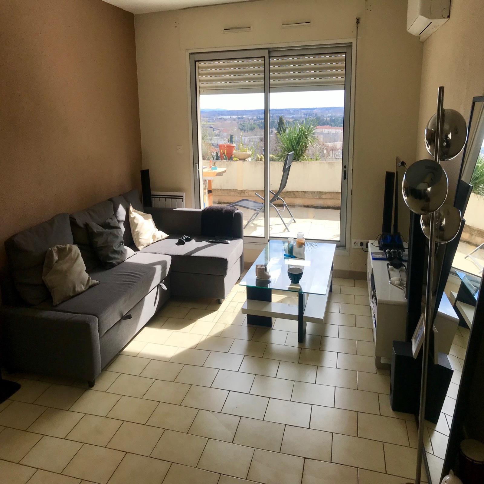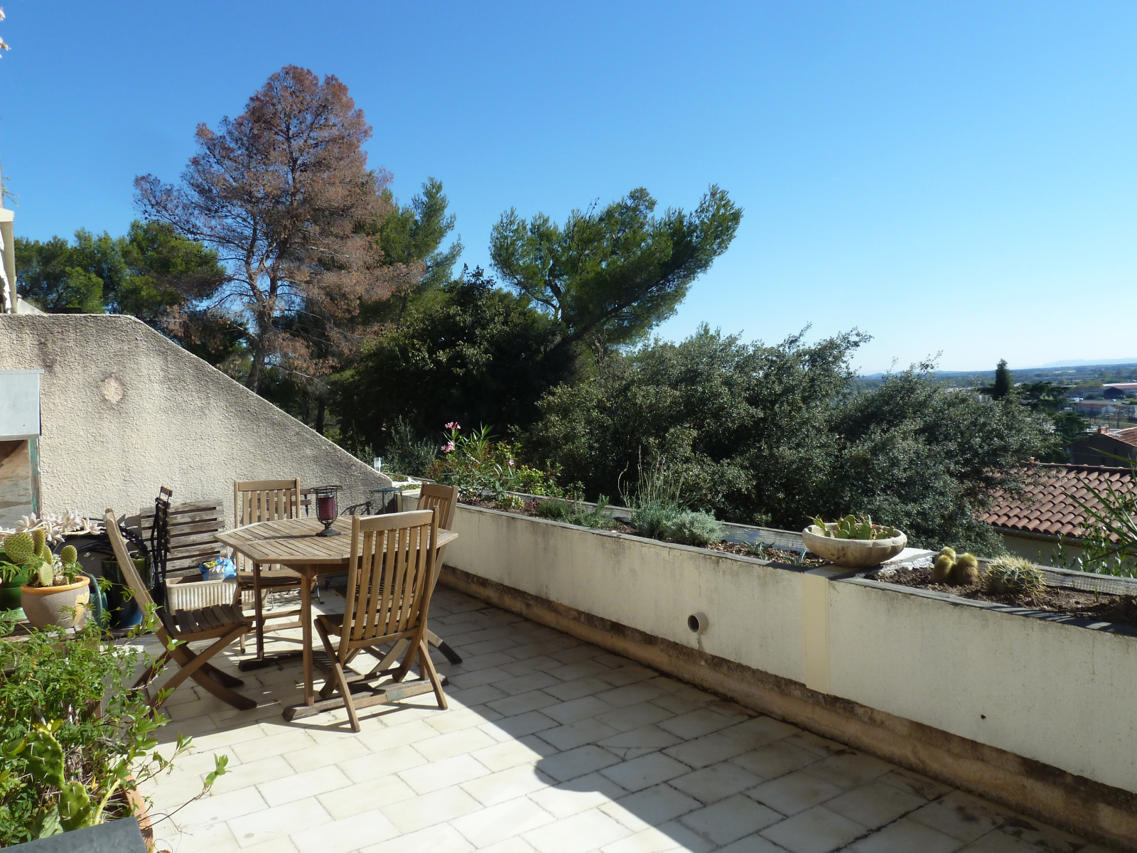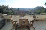 Du hall d'entrée on accède au salon et à la cuisine équipée s'ouvrant les deux sur une grande terrasse avec vue dégagée