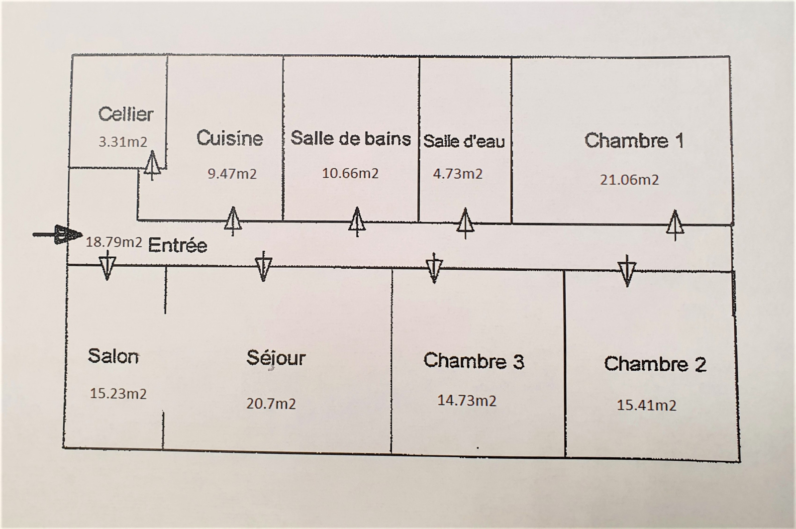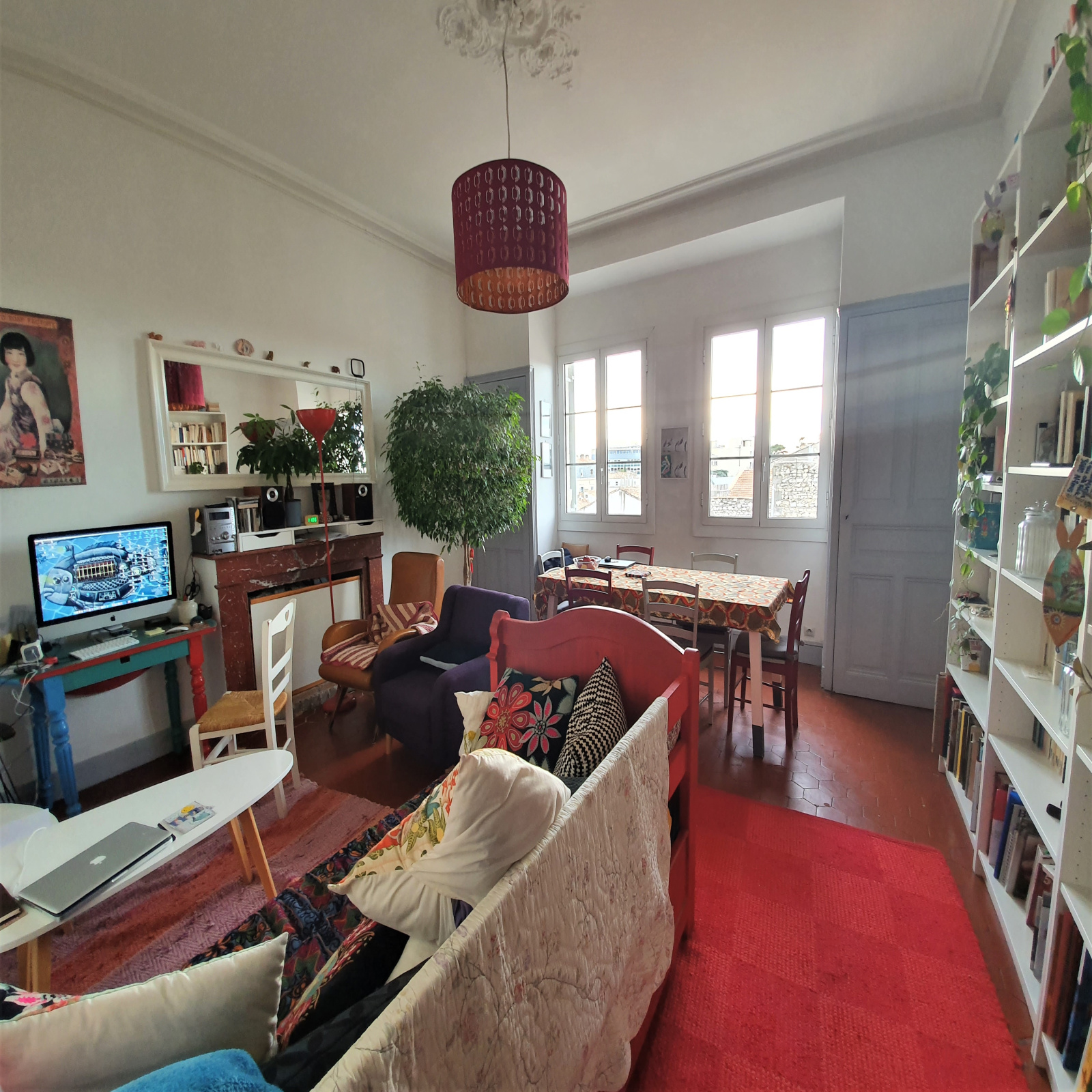 Dans un bel immeuble au 3ème et dernier étage, ce spacieux et lumineux appartement traversant dispose d'un hall d'entrée, un séjour-salon de 36 m² avec tomettes sol, cuisine indépendante avec cellier attenant, trois belles chambres, une salle de bains, une salle d'eau.
