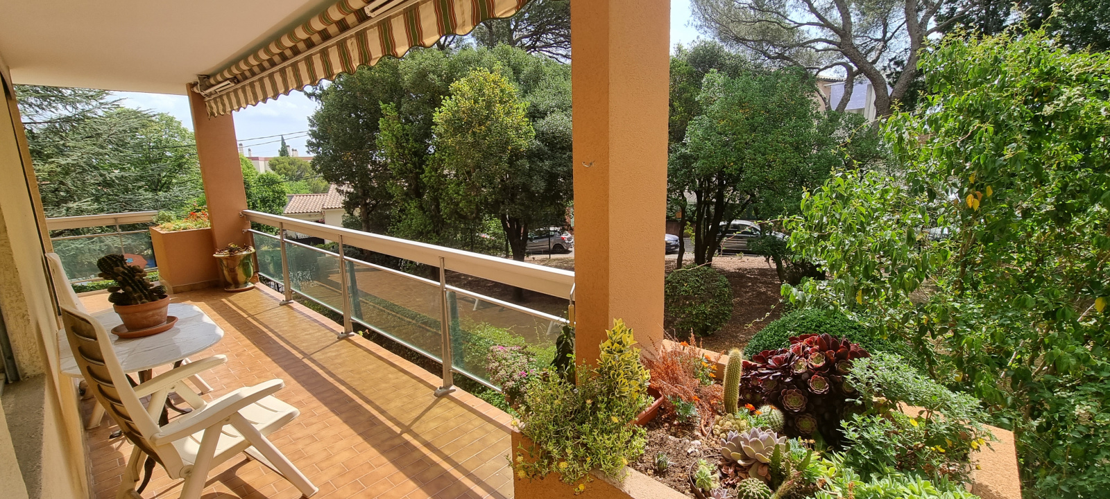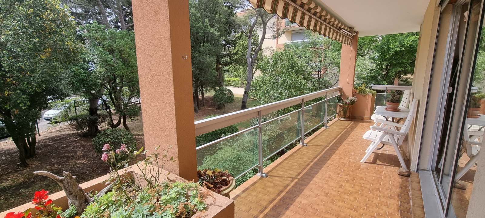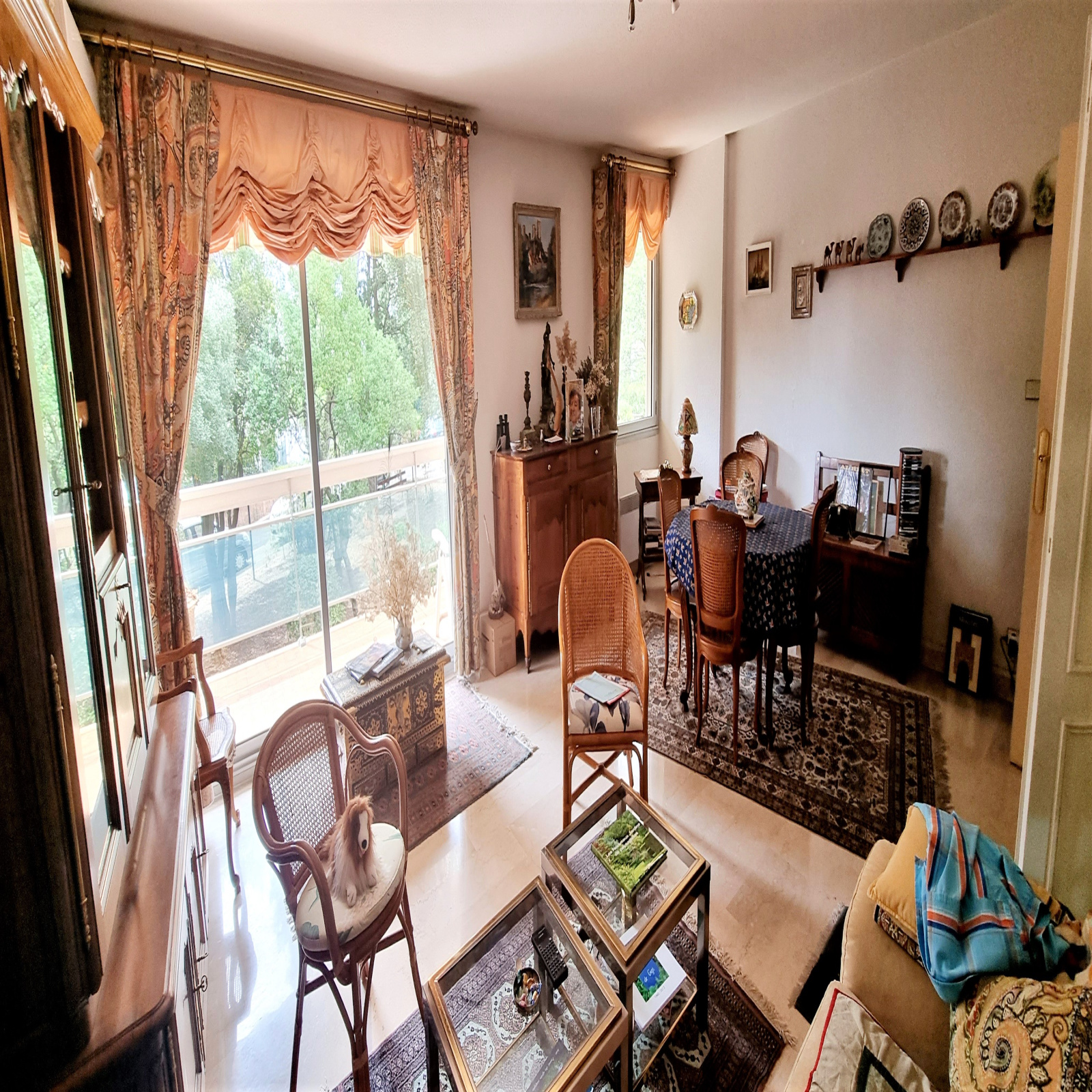 Par les pièces de vie on accède à un bel extèrieur de 17.6m2 ouvert sur le parc de la copropriété dont on profite d'une jolie vue et d'un calme bien agréable si proche du centre ville.