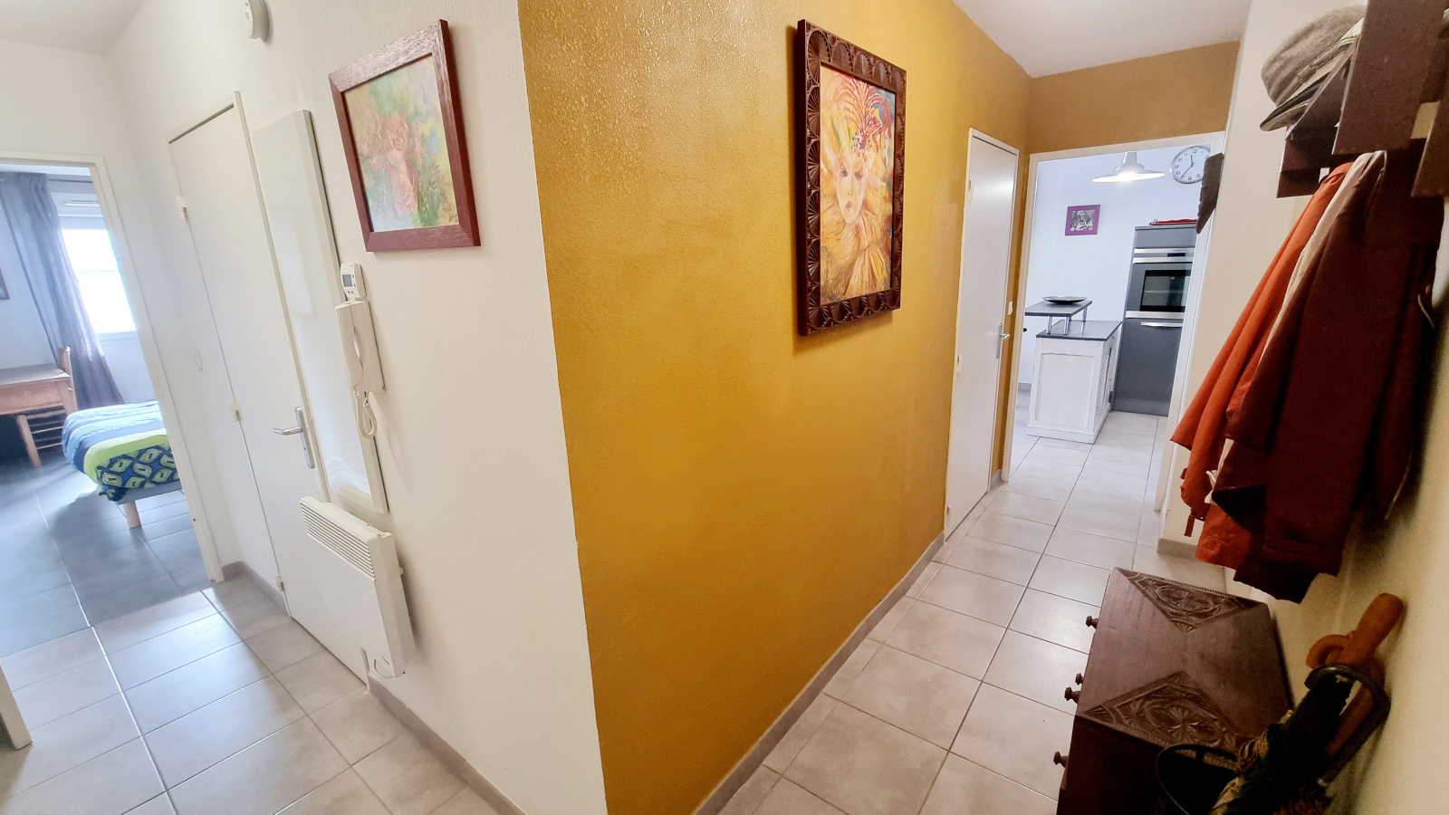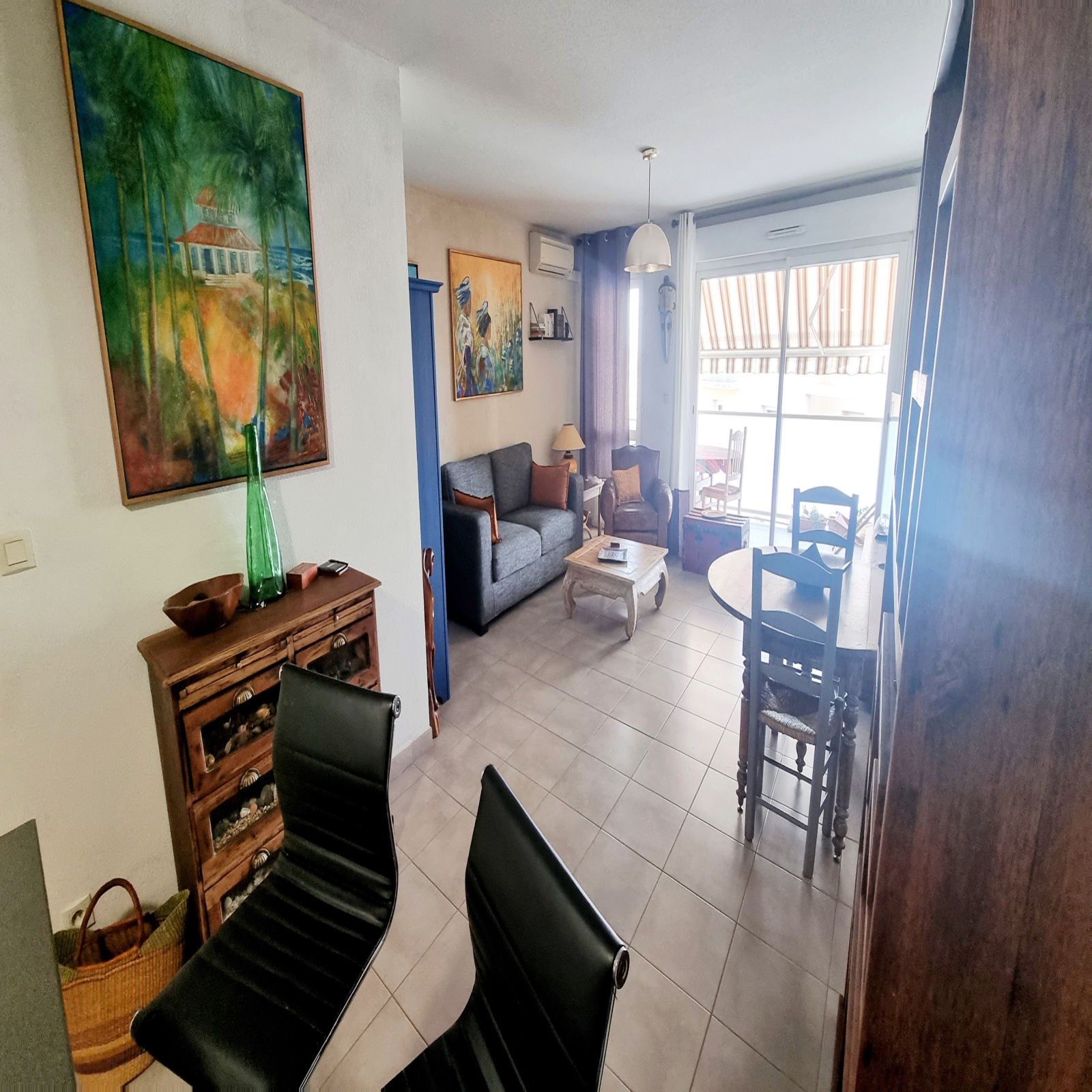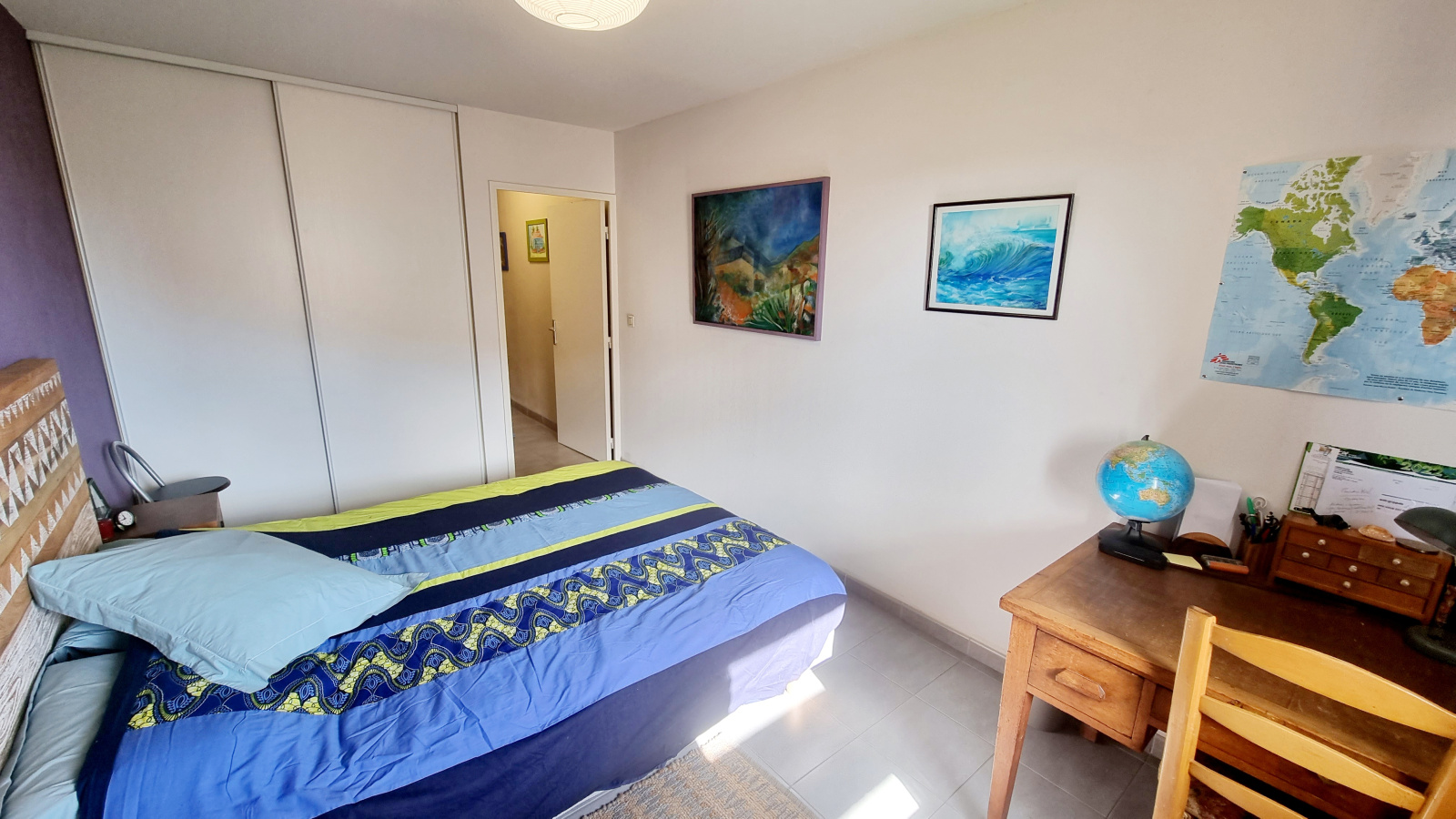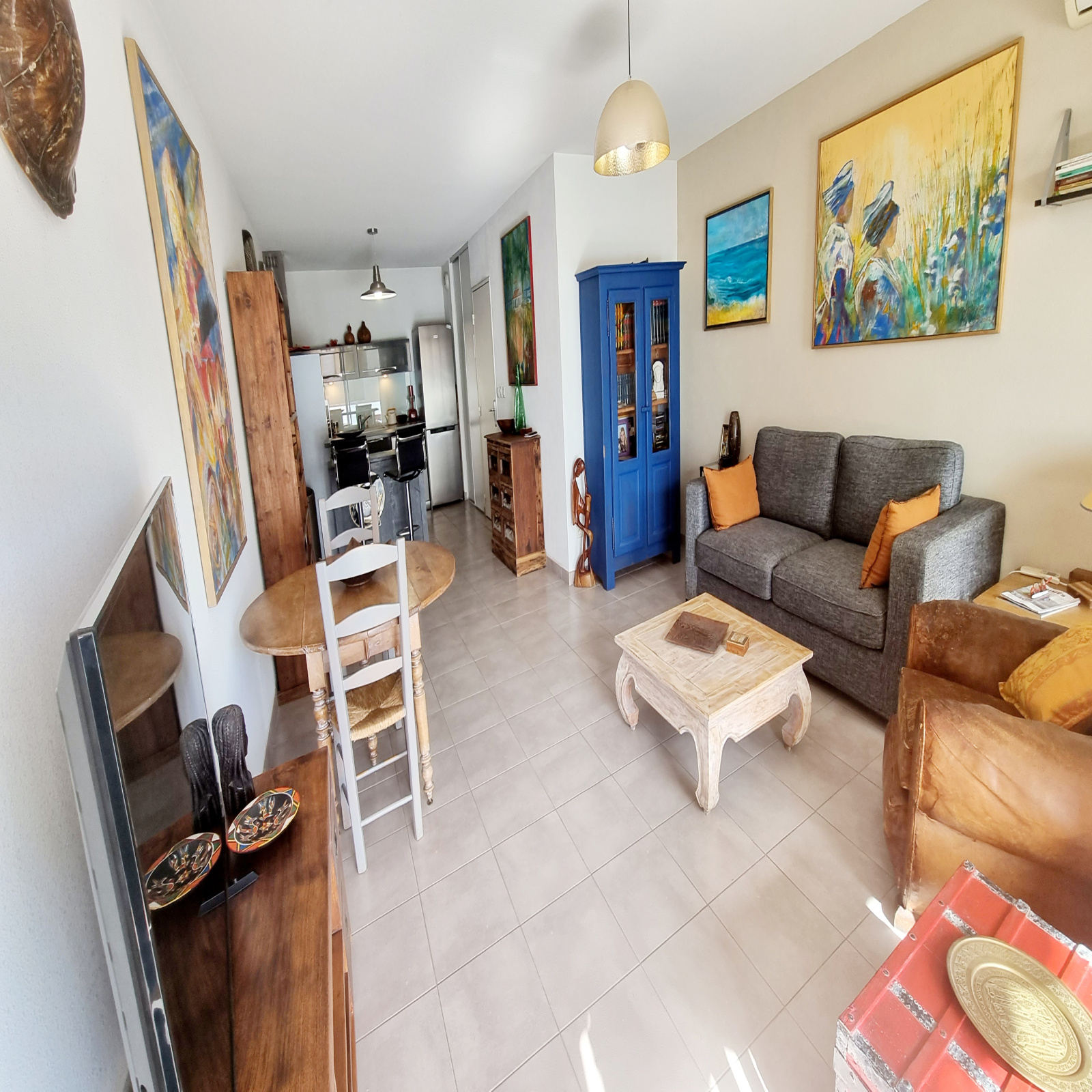 Votre agence A Coté immobilier à le privilège de vous proposer à l'achat, en Exclusivité, ce spacieux appartement T2/3, avec terrasse et un grand emplacement de parking très accessible. Il est composé dune grande pièce de vie de 32.6m2 avec cuisine entièrement équipée, ouverte sur la terrasse exposé plein sud, d'un cellier très pratique à proximité de l'espace cuisine,d'une grande chambre de 14.08m2, d'une salle d'eau, un WC indépendant. L'appartement est équipé d'une confortable climatisation réversible, de menuiseries double vitrage, d'une porte blindée et d'un store électrique servant à ombragé la terrasse. Le bien bénéficie des normes d'isolations phoniques et thermiques récentes. Les charges annuelles de copropriété sont d'environ 1400 Euros incluant l'entretien de la copropriété, l'ascenseur et l'eau.