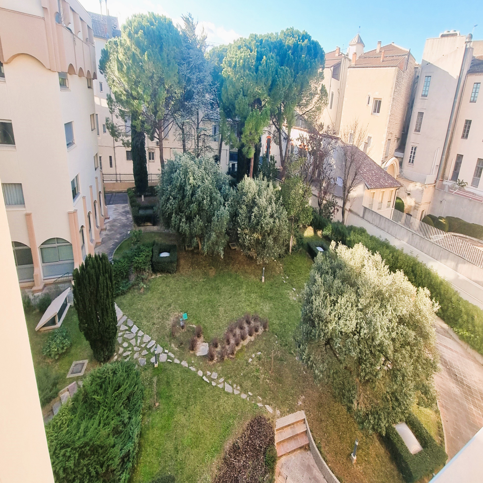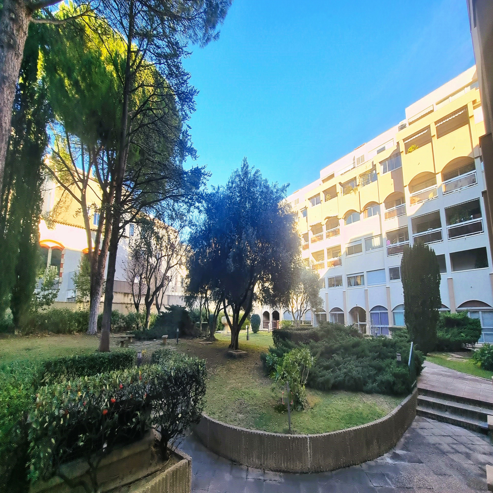 La résidence construite année 1980 est très bien entretenue, elle bénéficie d'un beau parc intèrieur ce qui est très rare en plein centre ville, elle est sécurisée et bénéficie d'un gardien