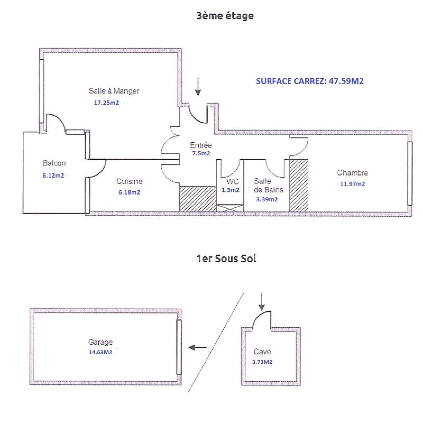 Un beau garage de ainsi qu'une cave, en sous-sol, sont aussi vendus avec l'appartement.