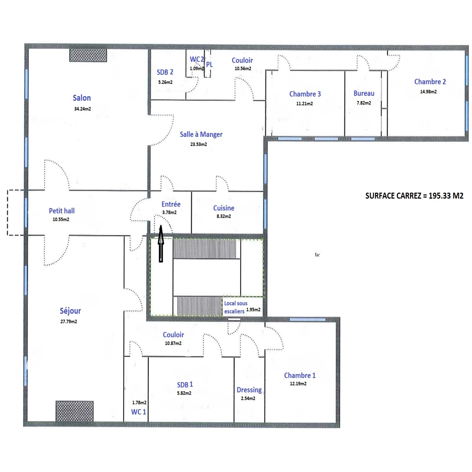 Ce bel appartement familial en U tournant autour d'un patio intèrieur est composé de: Deux grands salons, d'une salle à manger avec cuisine attenante, 4 chambres, 2 salles de bains, 2 WC, un dressing...