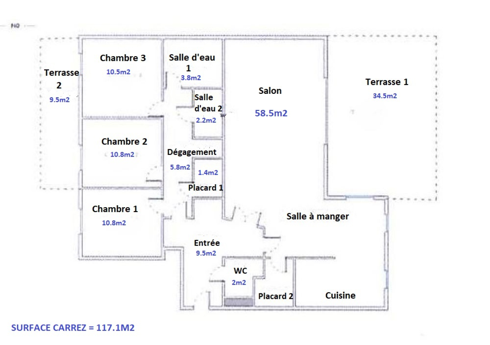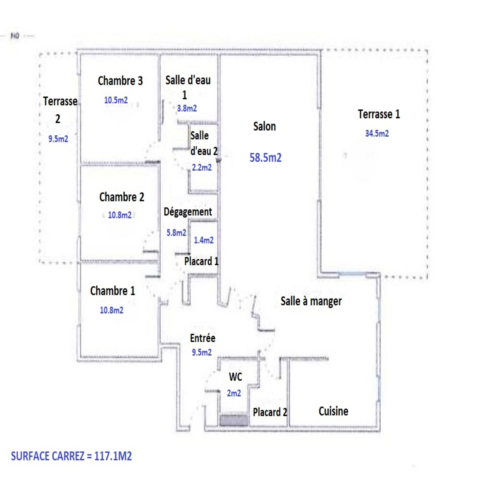L'appartement dispose d'une spacieuse pièce de vie de 58.5m2 avec une cuisine semie-séparée, ouverte sur une grande terrasse Sud de 34.5m2; de 3 belles chambres ouvertes sur une terrasse Nord de 9.5m2, de 2 salles d'eau, WC, d'un espace buanderie, d'un cellier....