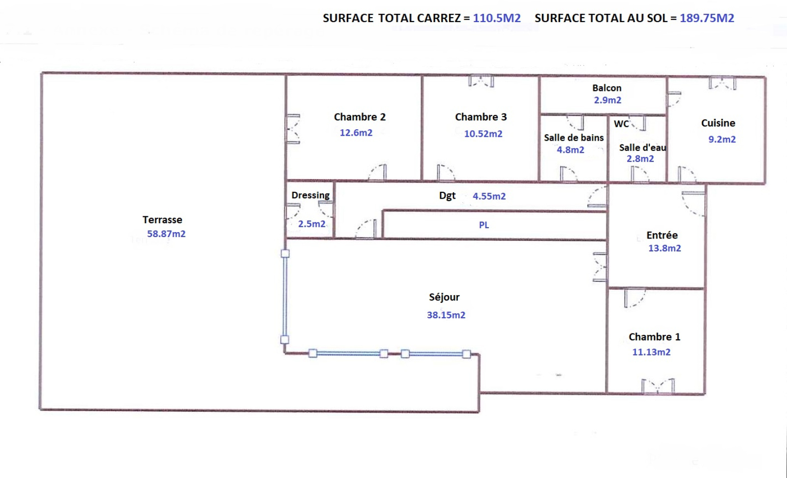 Rare !!! Jardins de la Fontaine !!! Spacieux appartement Type 4 de 110m2 habitable et 189m2 utilisable - Terrasse 58.87m2 - Garage en sous-sol - Parking