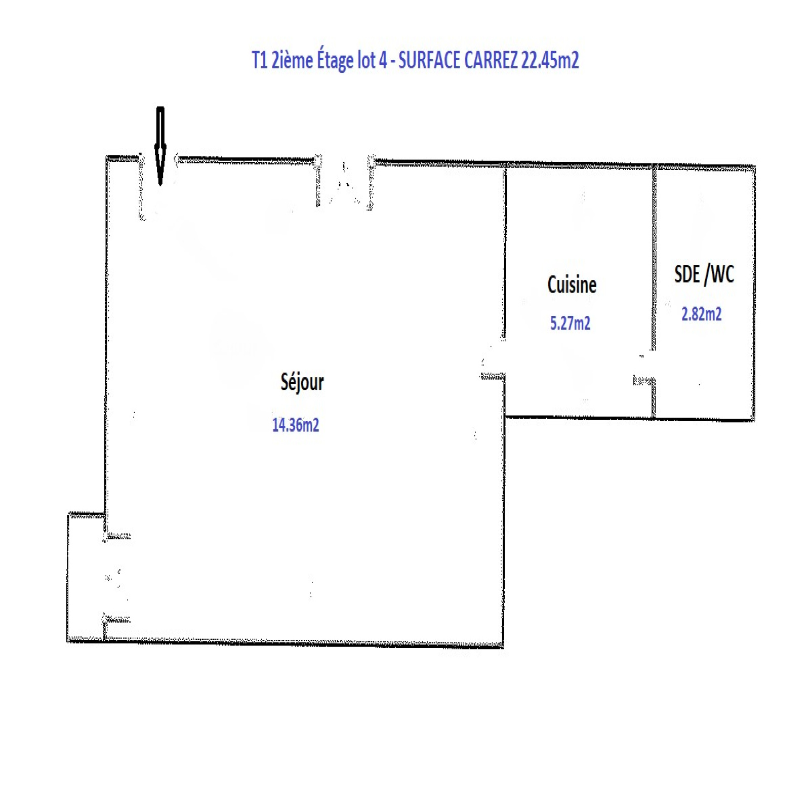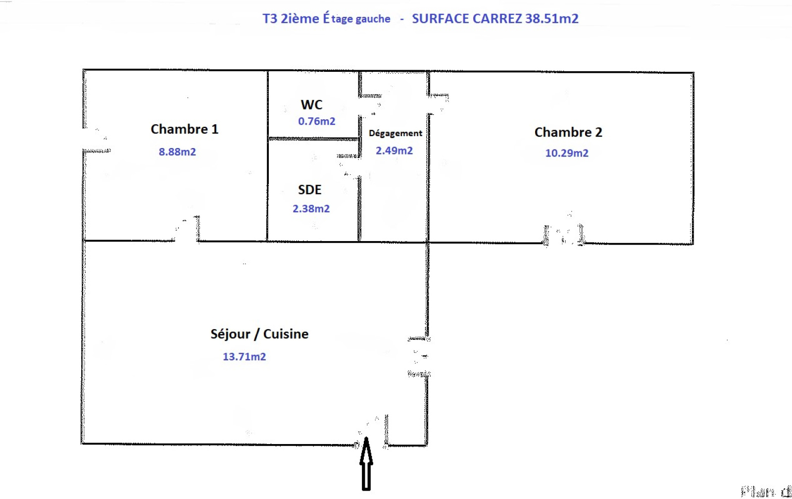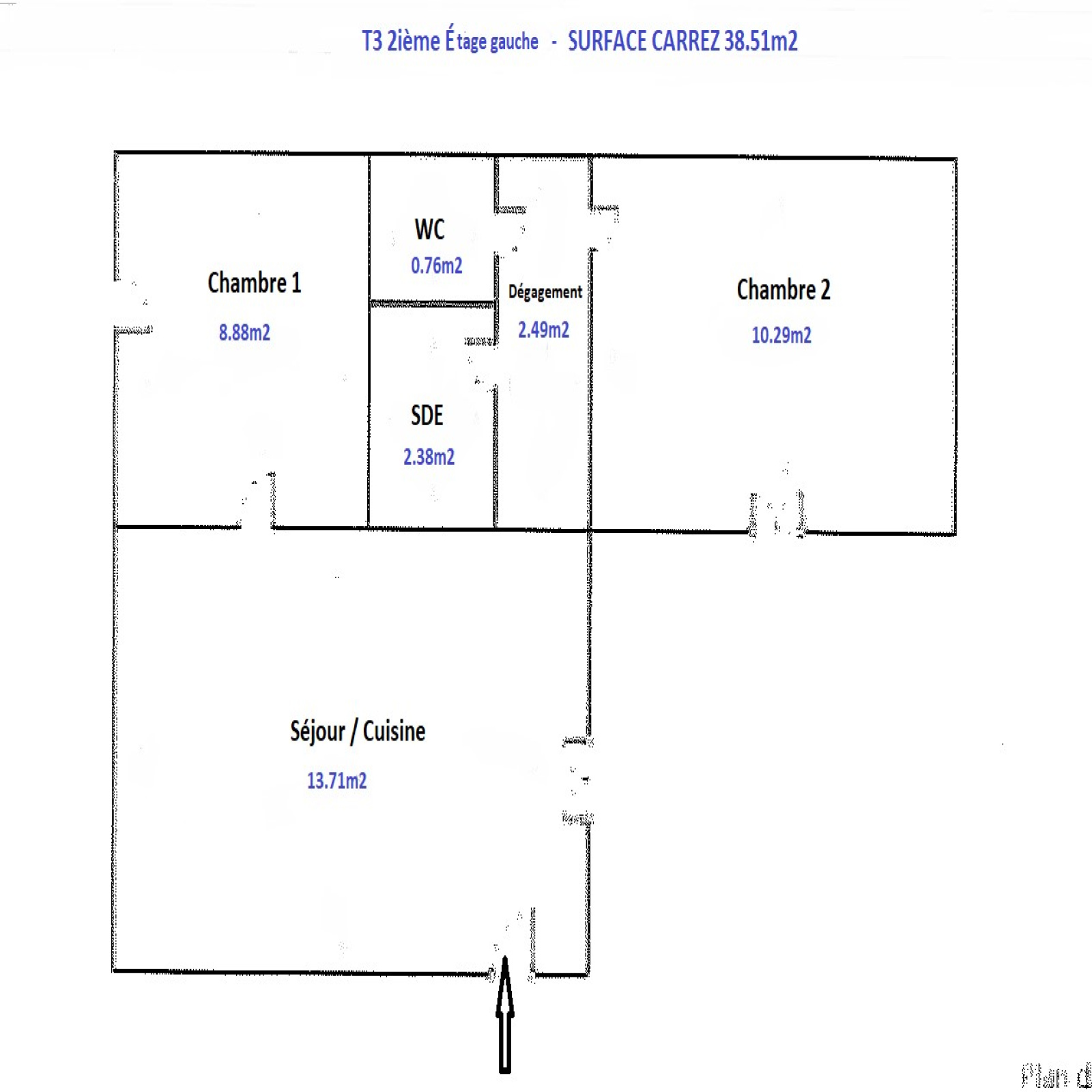 2ième étage: T2 - 38.51m2 - loué 484.83 Euros HC