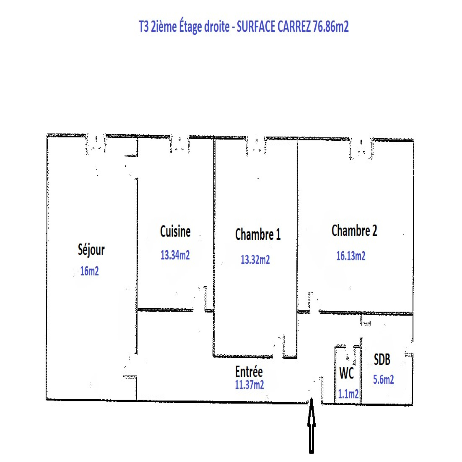 2ième étage: T3 - 76.86m2 - loué 495.87 Euros HC