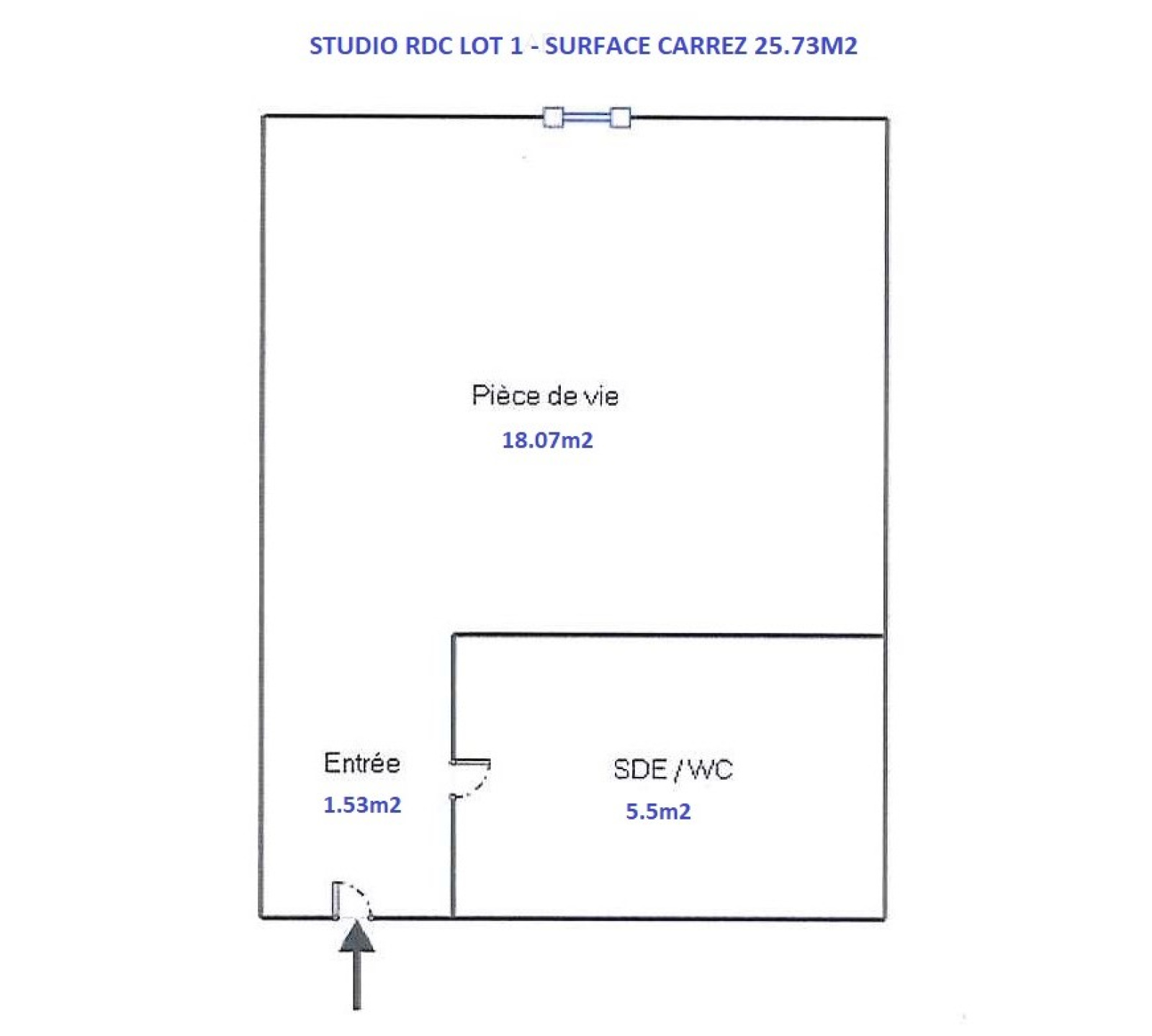 RDC: Studio 25.73 m2 - loué 350 Euros HC