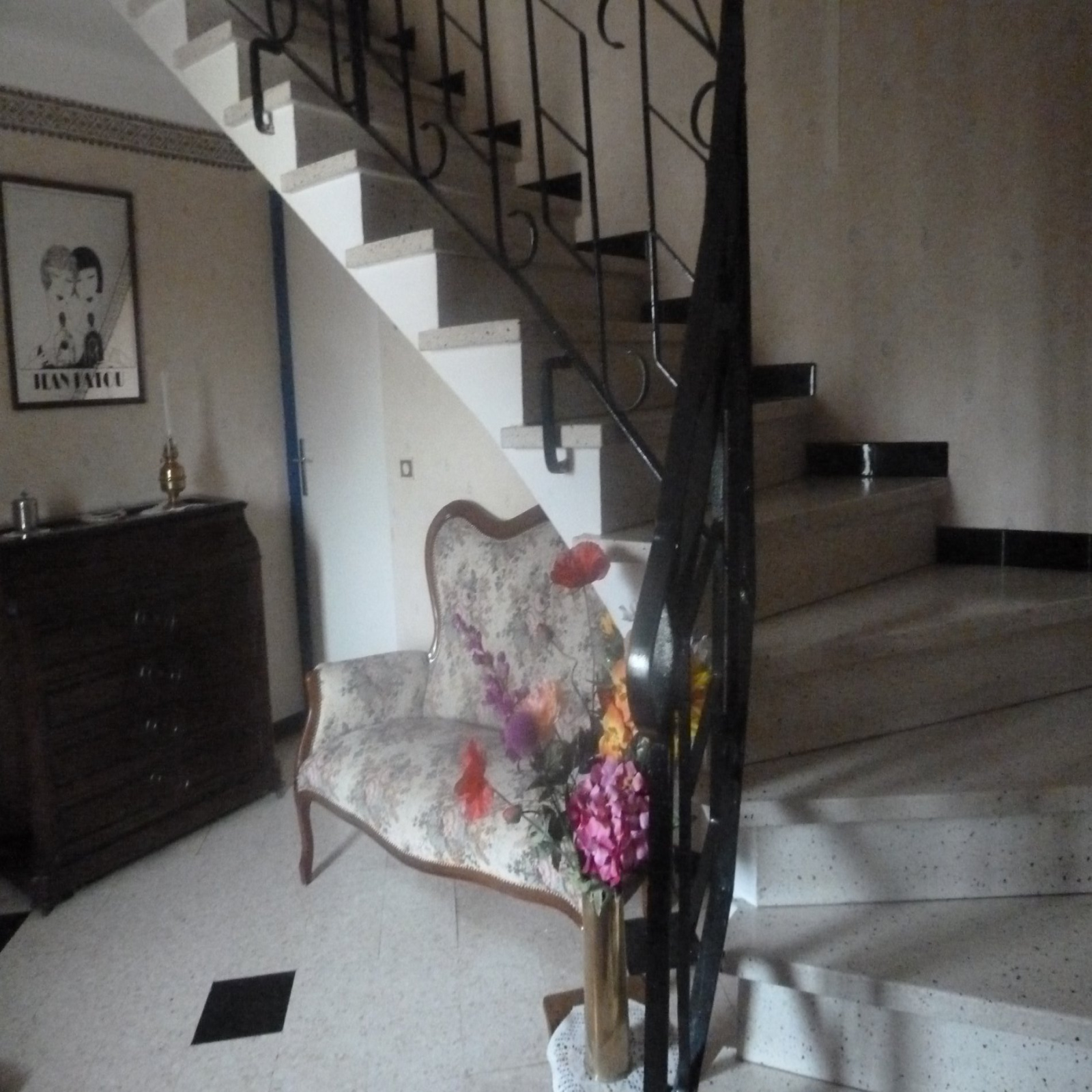 Mas de Mingue Maison années 60, 154 m² habitables comprenant en rez-de-chaussée : Hall d'entrée, salon, deux chambres avec point d'eau, wc ; à l'étage : salon ouvrant sur balcon, cuisine indépendante, trois chambres, salle de bains, wc + un studio ou local professionnel indépendant. Chauffage gaz. Possibilité 3 logements - Prévoir travaux de réhabilitation. Terrain clos de 508m²