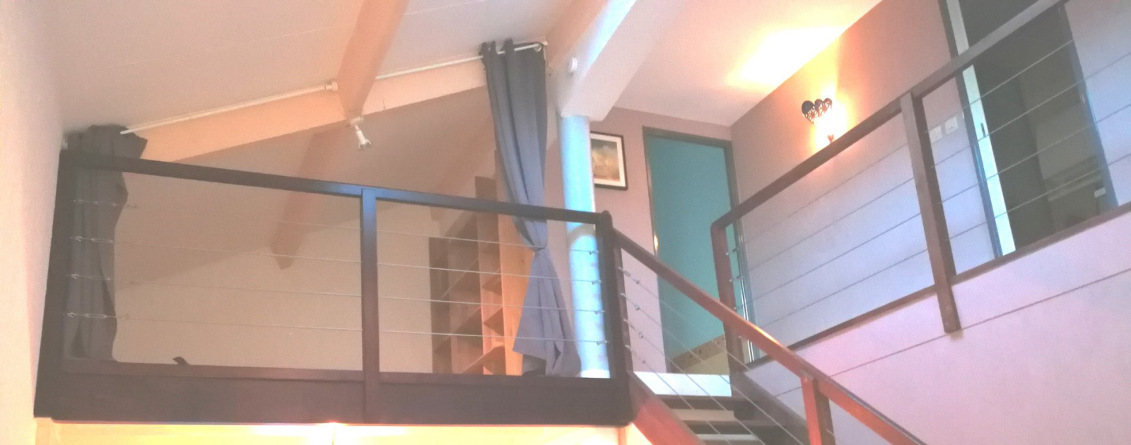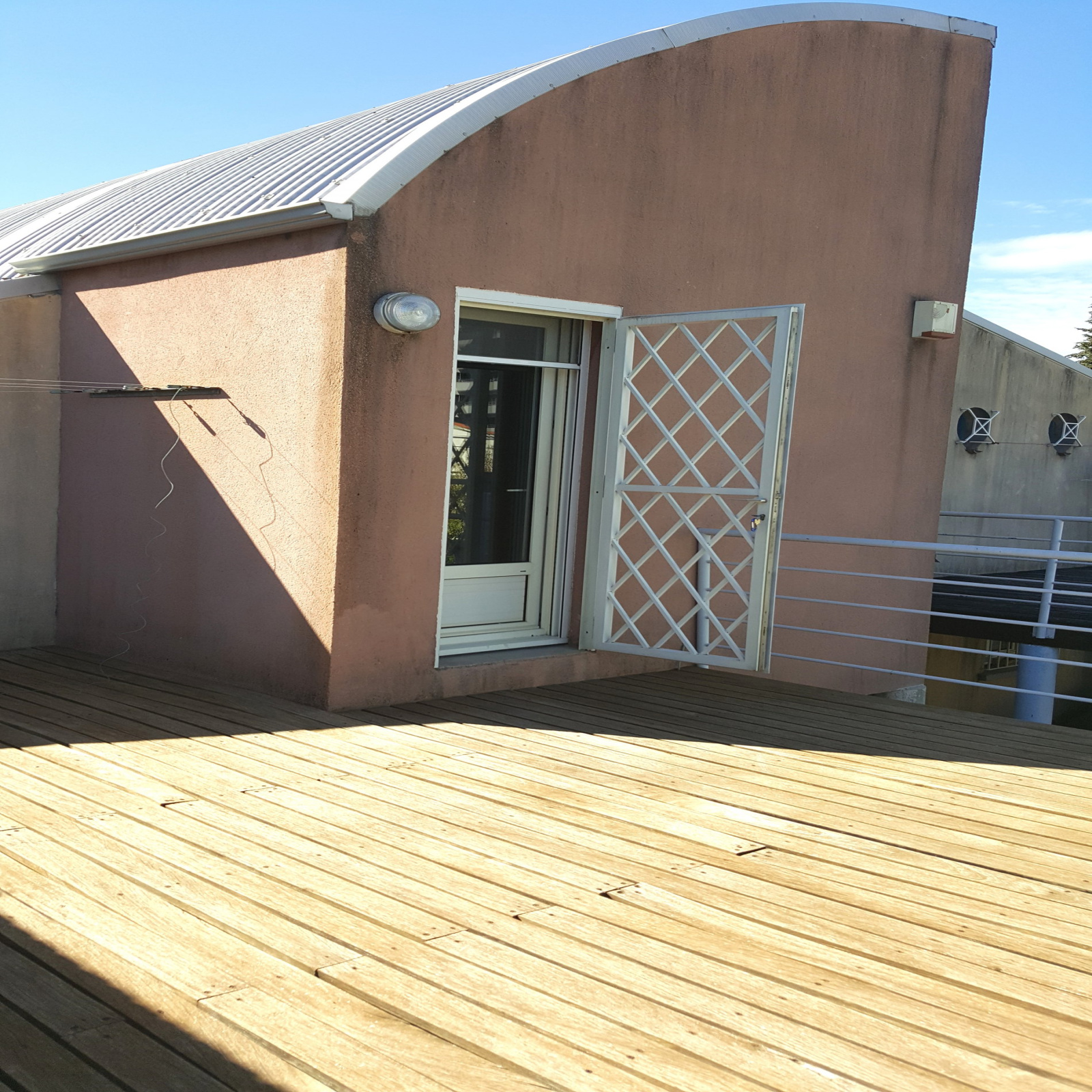 La maison est composé, au RDC, d'une belle pièce à vivre ouverte sur une terrasse et son jardin, d'une cuisine aménagée et équipée de 12.7m2 ouverte sur le séjour et la terrasse , et d'un Grand WC avec sa buanderie. On accède a l'étage par un bel escalier qui dessert 2 chambres de plus de 11m2, une salle d'eau avec WC, et une mezzanine qui peut servir de bureau, dressing ou chambre d'appoint. De l'étage on accède aussi à une grande terrasse de 25m2 avec vue dominante sur la ville.