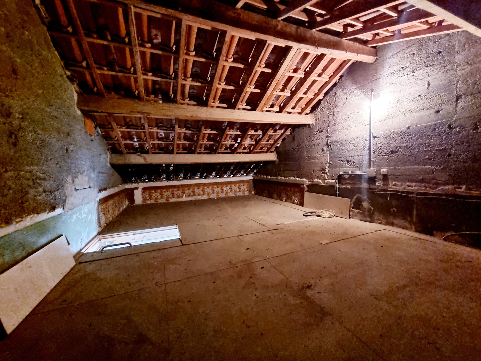 Possibilité de créer une belle chambre avec des placards sous la toiture, la hauteur le permet.