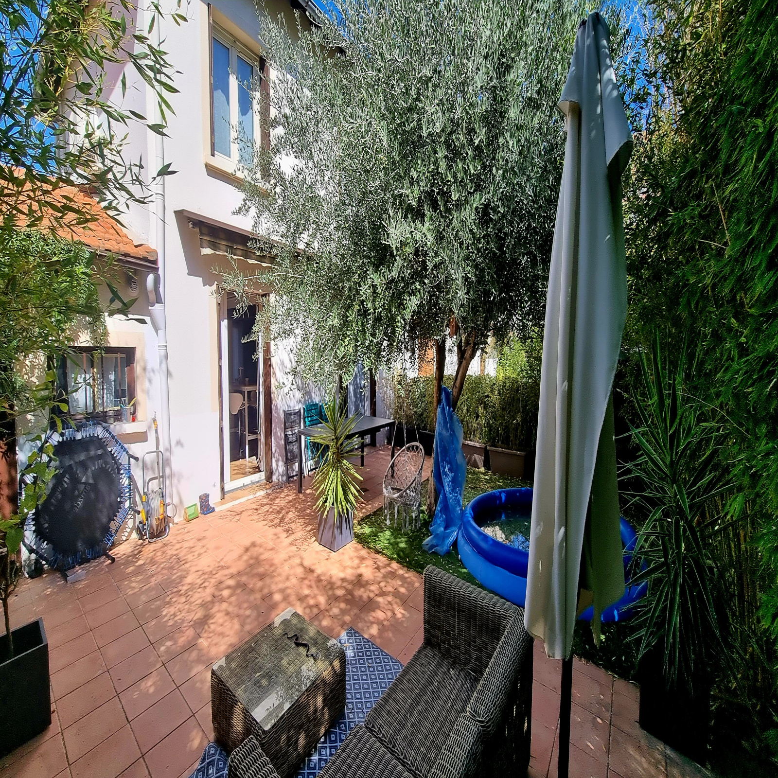La maison construite dans les années 1960 est en très bon état, elle a été entièrement rénovée en 2021. Elle est composée: au RDC: Un hall d'entrée, une grande pièce de vie très actuelle ouverte sur le jardin au sud, un WC, accessible par la cuisine un grand garage avec mezzanine qui sert aussi de cellier/buanderie. A l'étage: 2 grandes chambres, un bureau, et une grande salle de bains avec baignoire double vasque et WC. L'étage est climatisée.