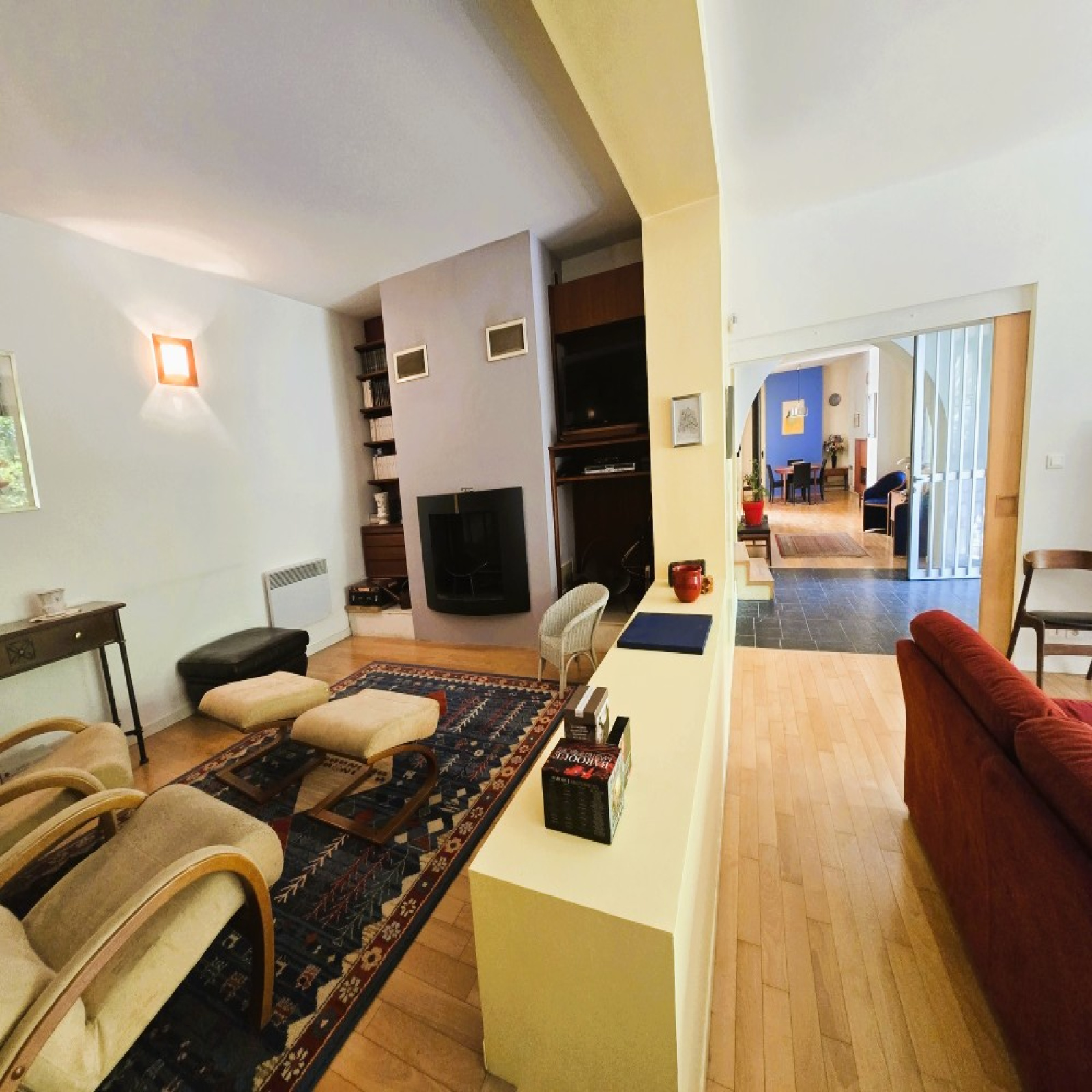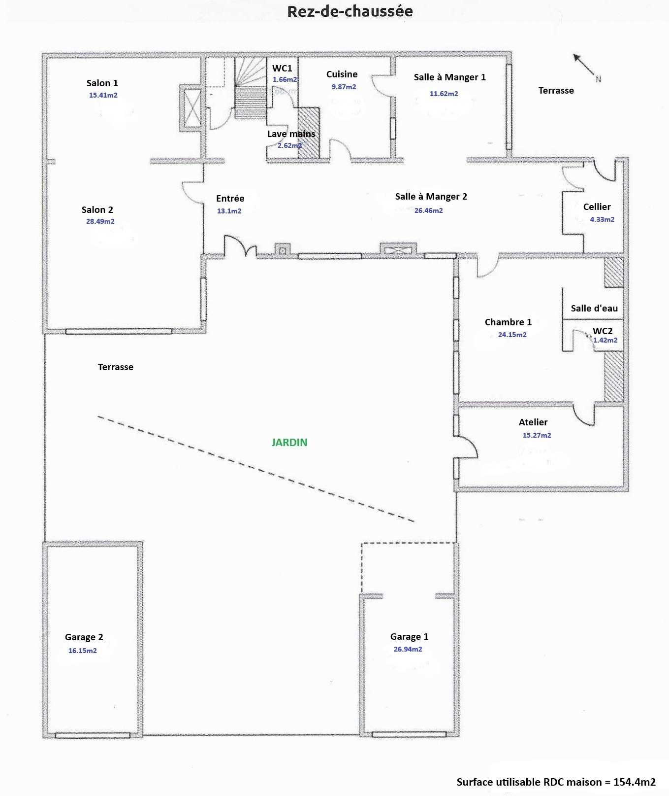 Au RDC: Une belle entrée desservant un double salon ouvert sur une terrasse, un WC avec lave main, une cuisine avec jardin d''hiver et terrasse atenante, une salle à manger, une chambre avec salle d'eau et WC privatifs, un atelier pouvert sur le jardin.