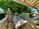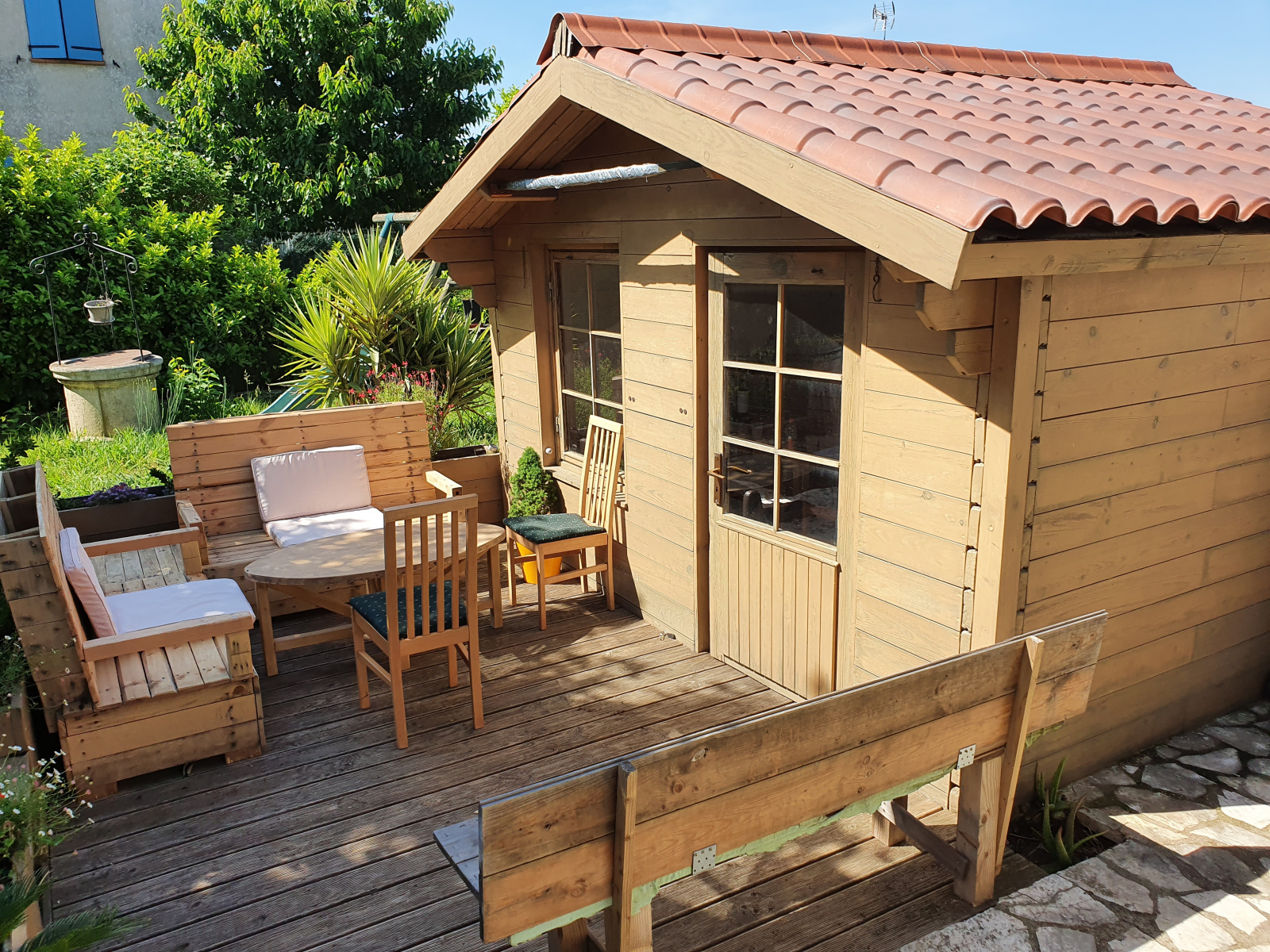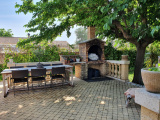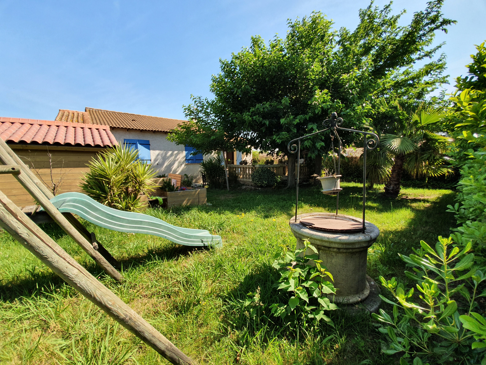 La villa est construite sur un trés jolie terrain clos de 565m2, elle dispose d'un très beau jardin piscinable avec forage, d'un jeu de boules, d'une grande terrasse d'environ 35m2 avec barbecu, et...d'un joli chalet indépendant de 10m2 aménagé qui peut permettre à vos enfants de s'évader ou de recevoir des amis.