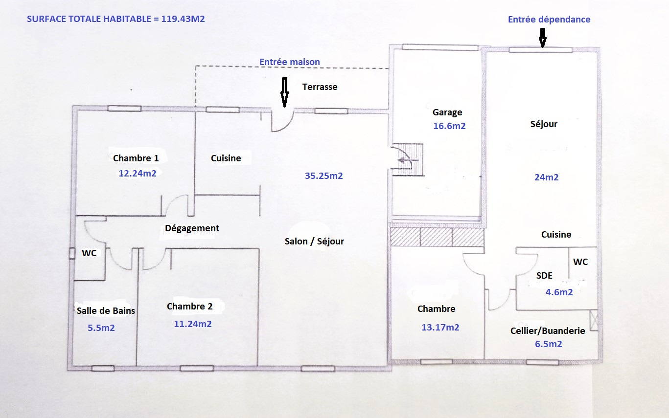 La dépendance a été construite récemment. Il est possible de raccorder les 2 parties à vivre facilement. Par le croquis joints avec l'annonce vous pourrez imaginez la meilleure composition de votre future habitation.