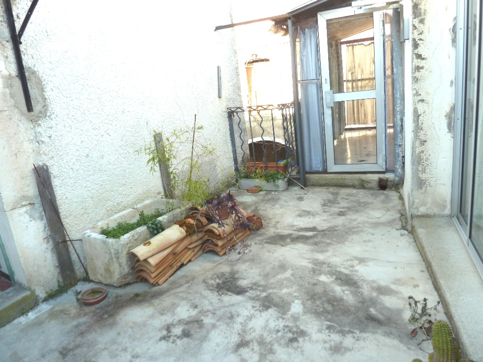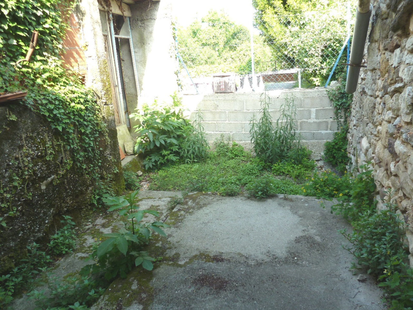 Le bien est composé de 2 corps de batiments attenants par une terrasse. Le batiment principal est composé en RDC d'un grand garage avec caves et atelier d'environ 100m2, et d'une petite cour.