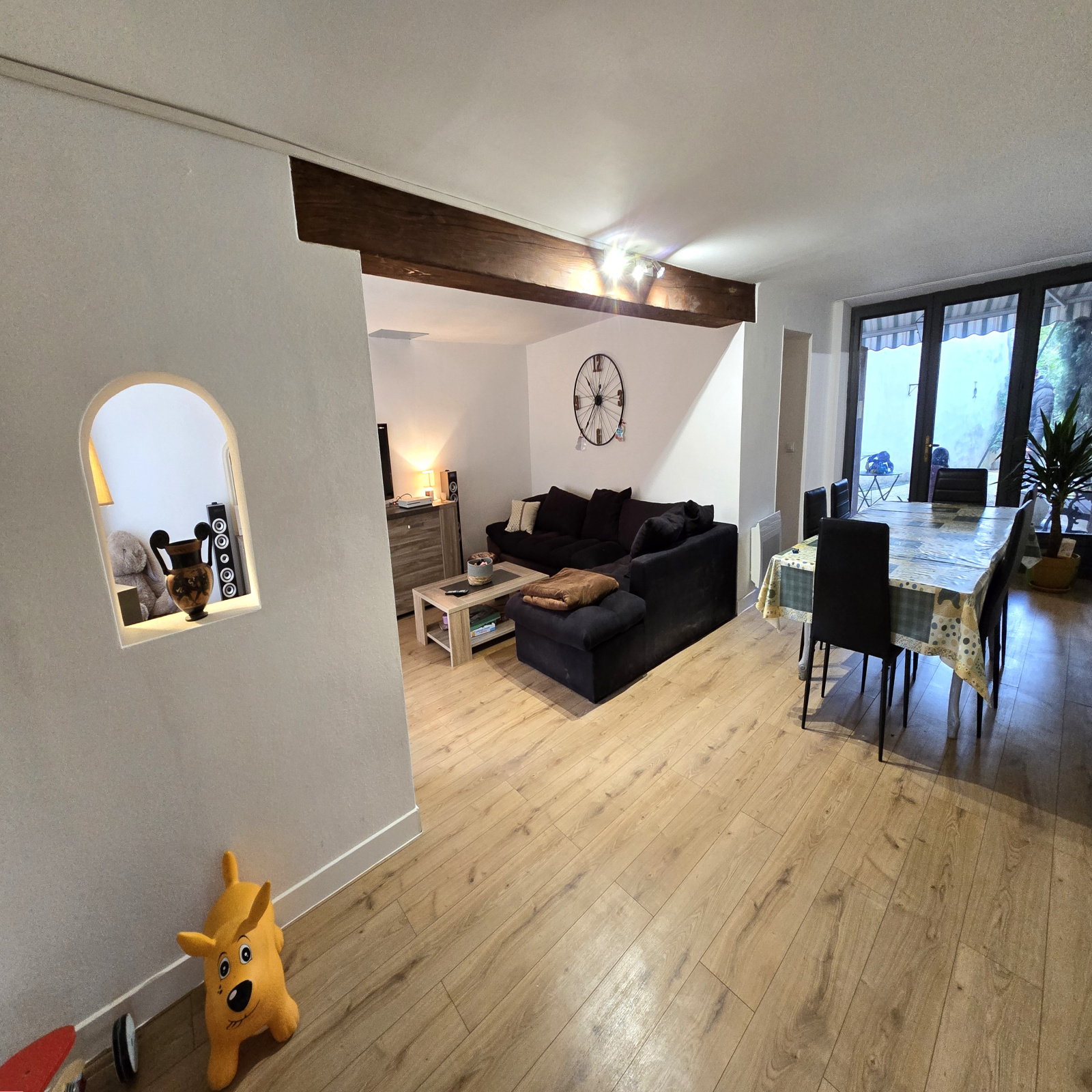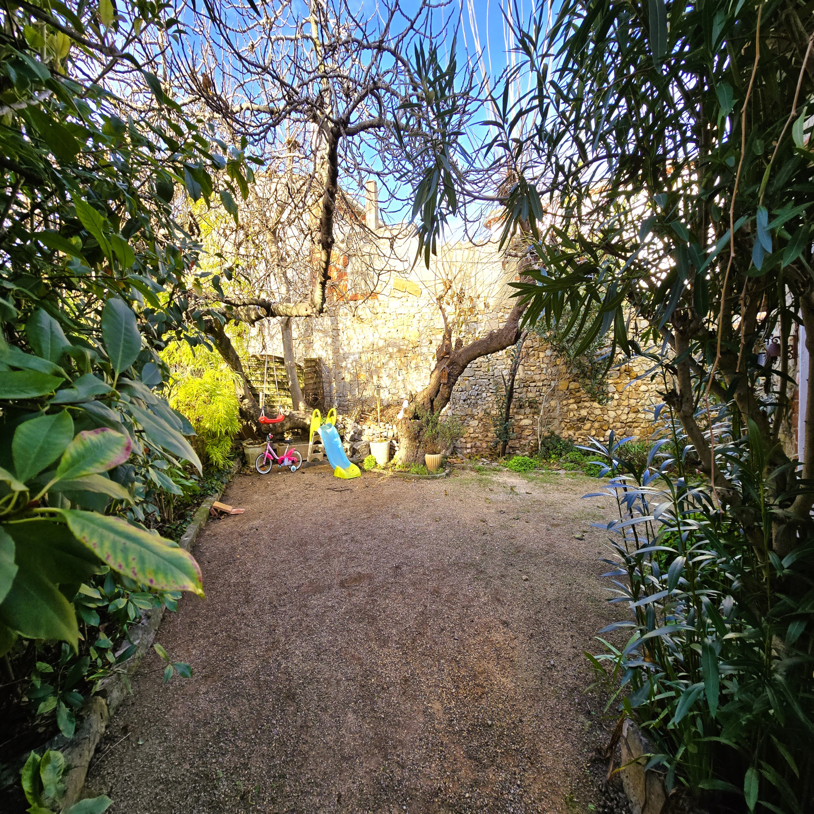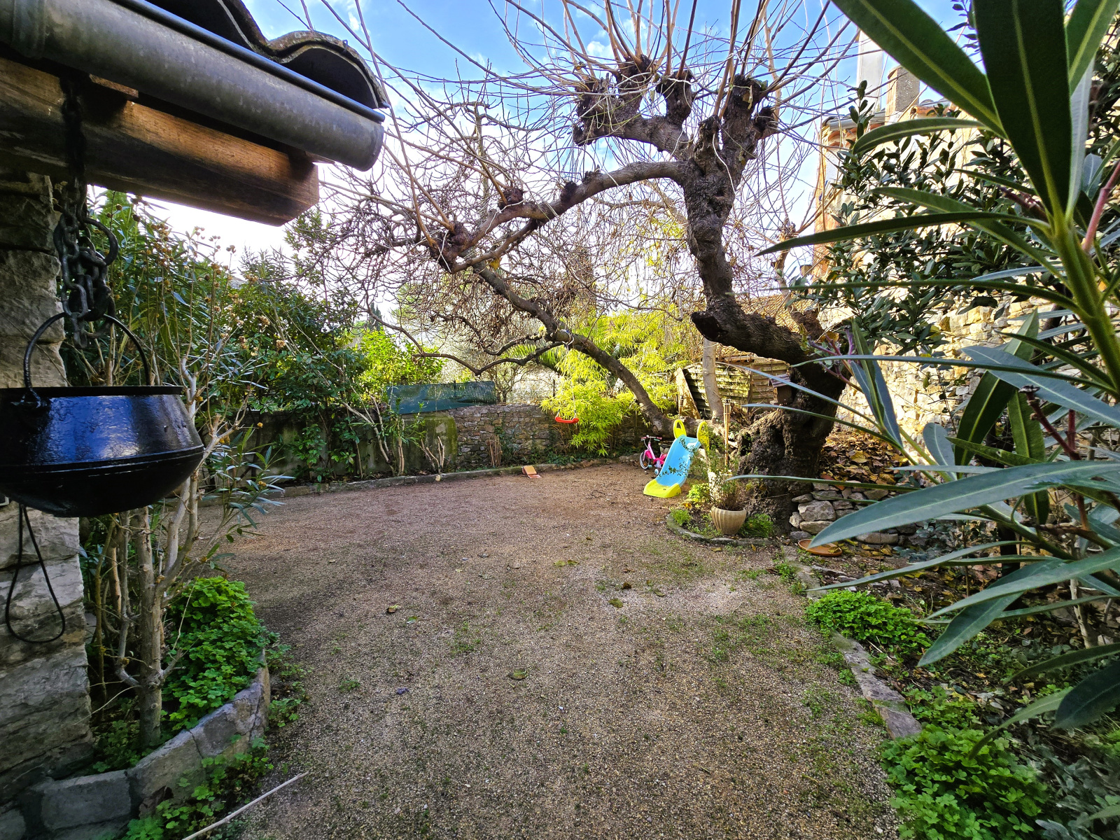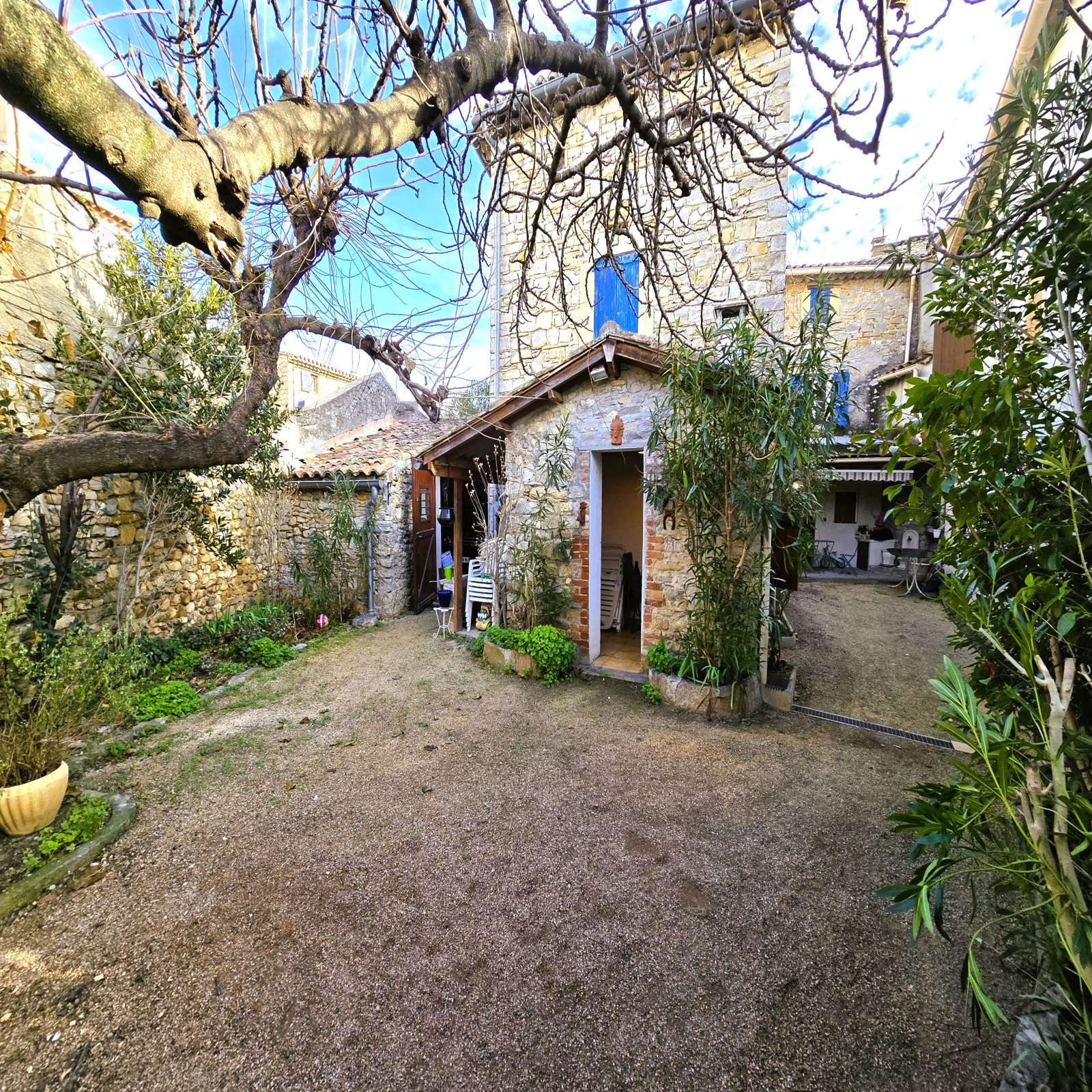 Au calme, une cour en L d'environ 180m2 très bien exposé vous permettra de profiter de l'extèrieur a la belle saison.